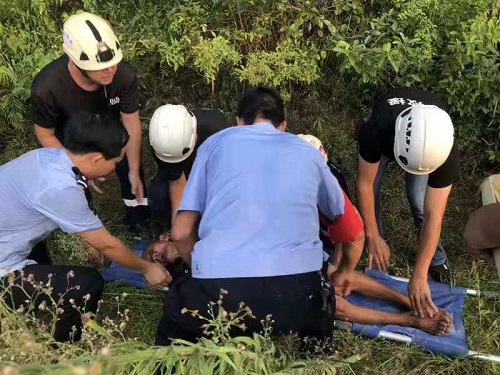 当日17时许,功夫不负有心人,在该所民警翻山越岭的寻找下,终于在龙口、埠头交界的山上一处茂密的草丛里找到了几乎奄奄一息的老人。此时,老人全身瘫倒在地,不时发出呻吟声,身上沾满了草屑,上身和裸露的腿部爬满了蚂蚁。由于两天没吃没喝,且在外暴晒,老人已严重脱水,生命危在旦夕。该所民警让家属先喂了点水,为了避免二次伤害,大家没有去挪动老人,一同参与救援的曙光救援队抬来担架,民警与救援队员合力将老人小心抬上担架,轻轻拍下老人身上的蚂蚁,送入救援车内。警车在前鸣笛开道,火速将老人送往龙口卫生院进行抢救。经抢救,老人目前已经脱离生命危险。