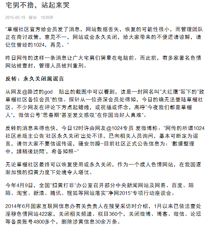 草榴社区被永久关闭 多家色情网站管理员被判重刑