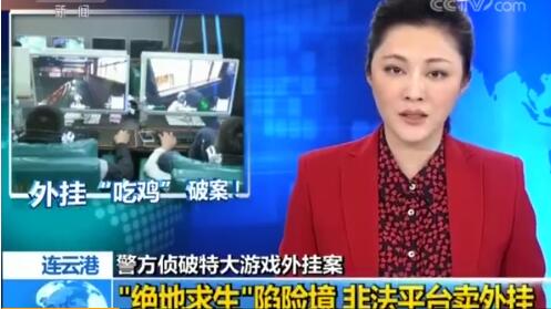 而今天央视也报道了连云港警方侦破特大《绝地求生》外挂案一事
