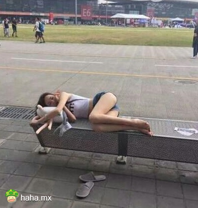 妹子:走了半天 终于有个地方可以避雨了