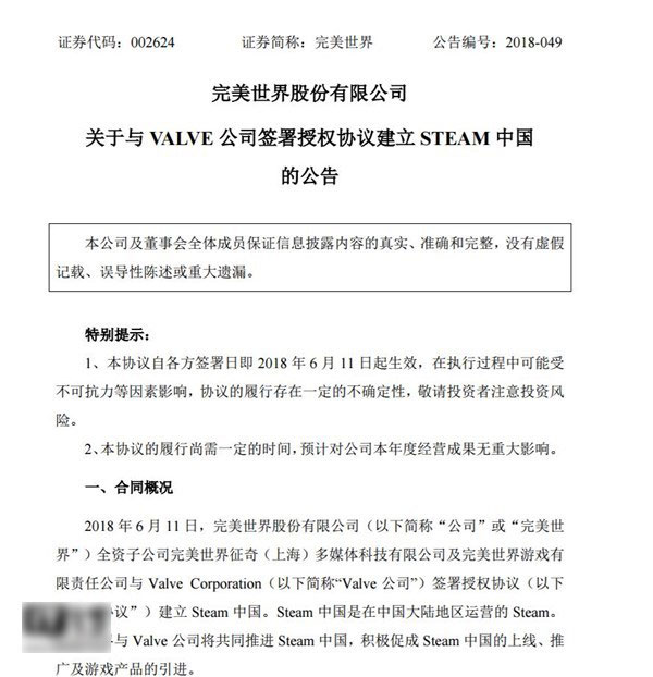 今早外媒报道称Valve将会和完美世界合作,将Steam带入中国,随后完美世界发布公告