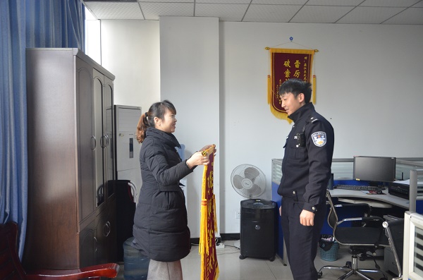 法治网讯(特约记者  赵竹萱)“曹警官,非常感谢你,不辞辛劳地帮我把钱追回来了。”1月5日下午,家住綦江区文龙街道水晶印象小区的丁女士赶到文龙派出所,将一面印着“尽职尽责,真诚为民”的锦旗送到了办案民警曹广杰手中。