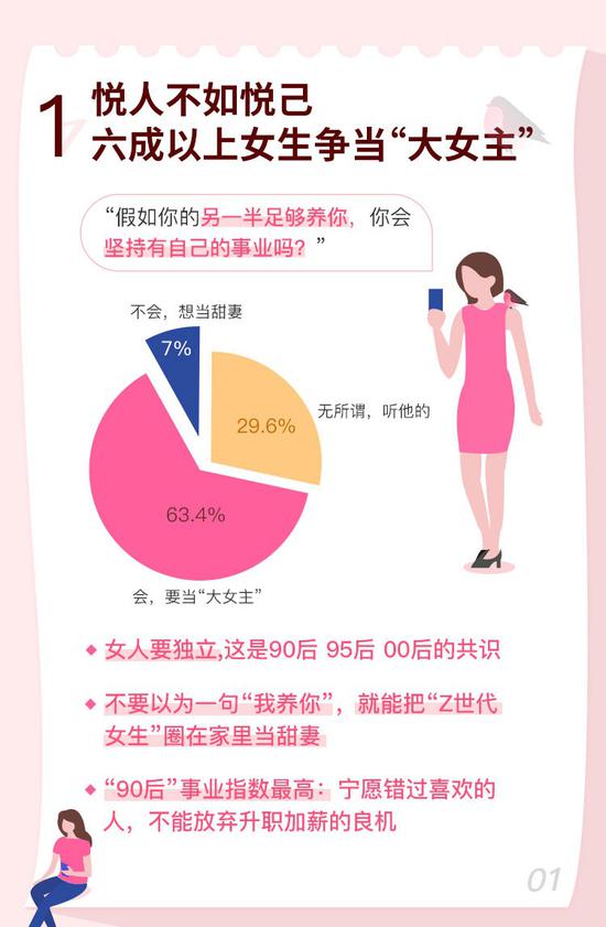 独立已经成为大多数女性心目中的共识,60%以上的女生争当大女主。