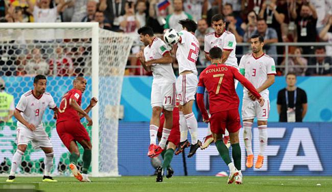 C罗任意球蹭人墙高出