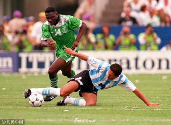 1994年6月25日,美国波士顿,1994美国世界杯小组赛,阿根廷2-1尼日利亚。