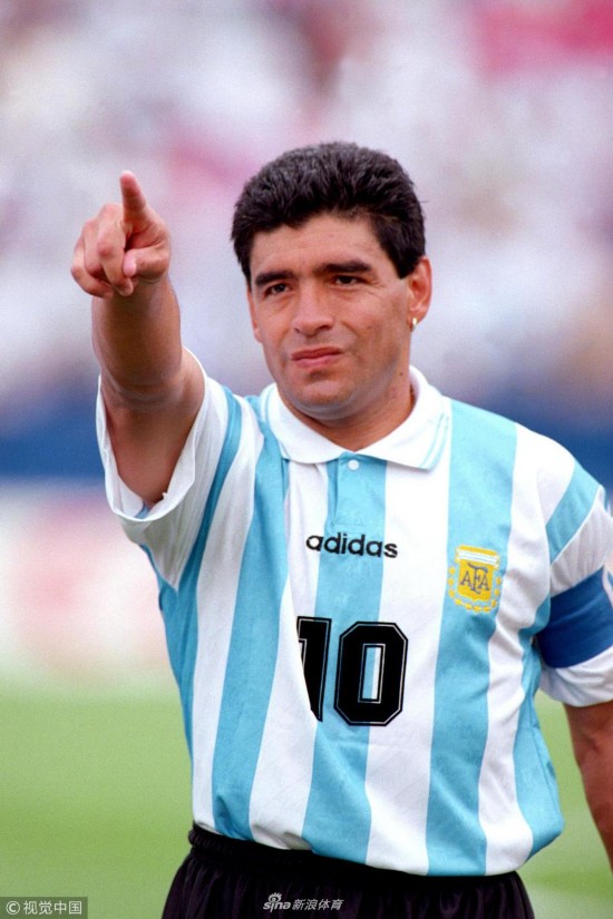 1994年6月25日,美国波士顿,1994美国世界杯小组赛,阿根廷2-1尼日利亚。马拉多纳场上指挥。 马拉多纳