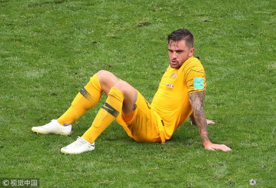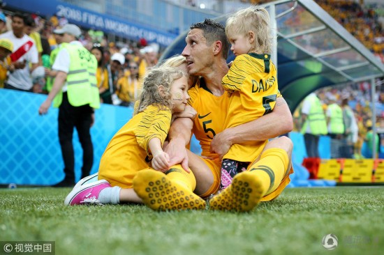腾讯体育6月27日讯 2018俄罗斯世界杯小组赛C组,澳大利亚以0-2秘鲁结束本届世界杯的最后一场比赛。赛后球员失落不已,5号米利甘的孩子到赛场上安慰自己父亲。