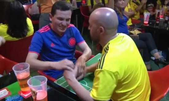 腾讯体育6月27日讯 哥伦比亚也是一个为足球狂热的国度,不幸的是,一名叫里卡多的球迷失去了听力和视力,但他在朋友的帮助下依然能够感受俄罗斯世界杯的魅力。 理查德在9岁的时候不幸失聪,也变成了盲人,但他对足球的热爱并没有就此减弱。在之前哥伦比亚和波兰队小组赛中,他的朋友就帮他了解场上的形势。这名叫塞萨尔的朋友和理查德之间有独特的手势系统,他们在一家位于波哥大的俱乐部看球。