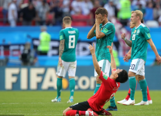 6月26日,在喀山,韩国队于世界杯小组赛的最后一场比赛中爆冷击败了卫冕冠军德国队。虽然最后韩国没能从小组出线,但是他们也没有在世界杯的死亡之组中垫底,已经可以仰着头回家了。