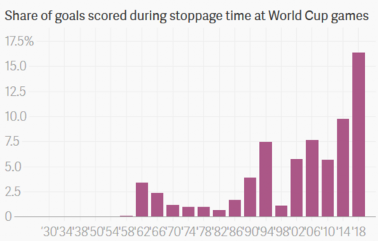 历届世界杯补时进球占比
