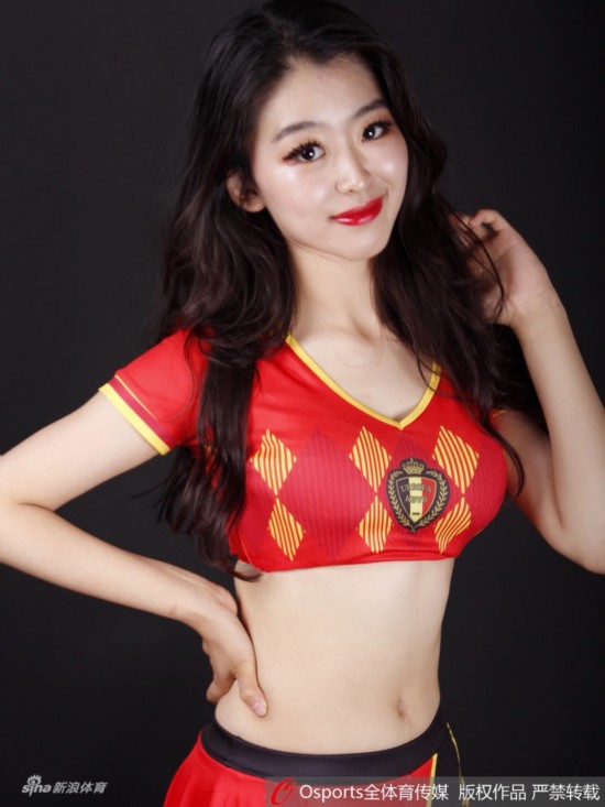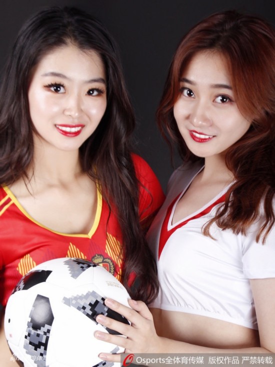 2018年6月28日,2018年俄罗斯世界杯G组:英格兰vs比利时,Lucky team中国体育宝贝拍摄性感写真为比赛打call。