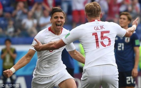 然而下半场波兰队还是敲开了日本队的大门,第一次险情出现在第53分钟,格罗西基右路送出妙传,莱万多夫斯基几乎获得单刀机会,川岛永嗣及时出击化解险情。而第59分钟,库尔扎瓦任意球传中,贝德纳雷克凌空垫射命中,波兰终于完成破门,1比0领先日本。