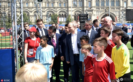 高清:普京造访世界杯主题公园 与孩子们过招大秀脚法