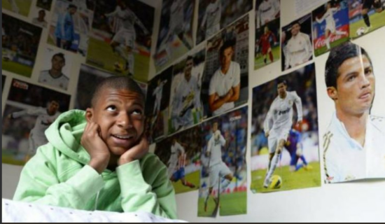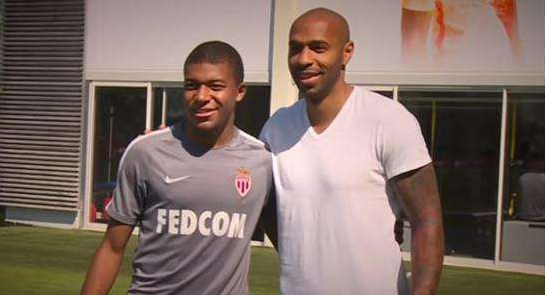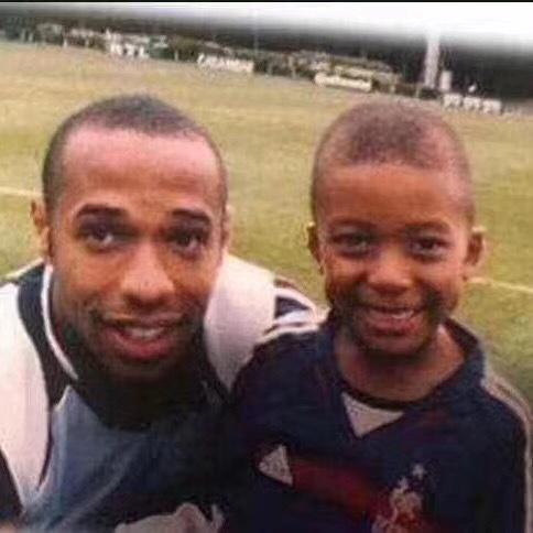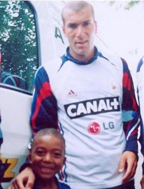 小时候的姆巴佩和享誉世界的亨利大帝合影。