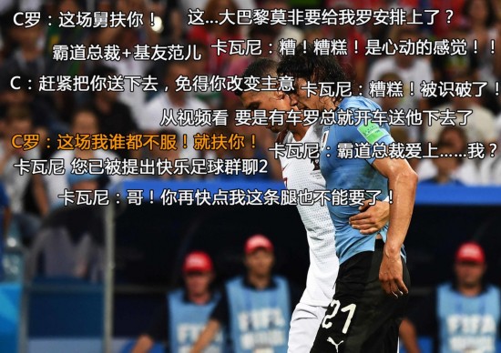 1、C罗搀扶卡瓦尼下场——C罗:这场我谁都不服!就扶你!