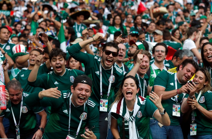 6月17日,墨西哥队球迷庆祝球队获胜。当日,在俄罗斯莫斯科进行的2018俄罗斯世界杯足球赛F组小组赛中,墨西哥队以1比0战胜德国队。(新华社/欧新)