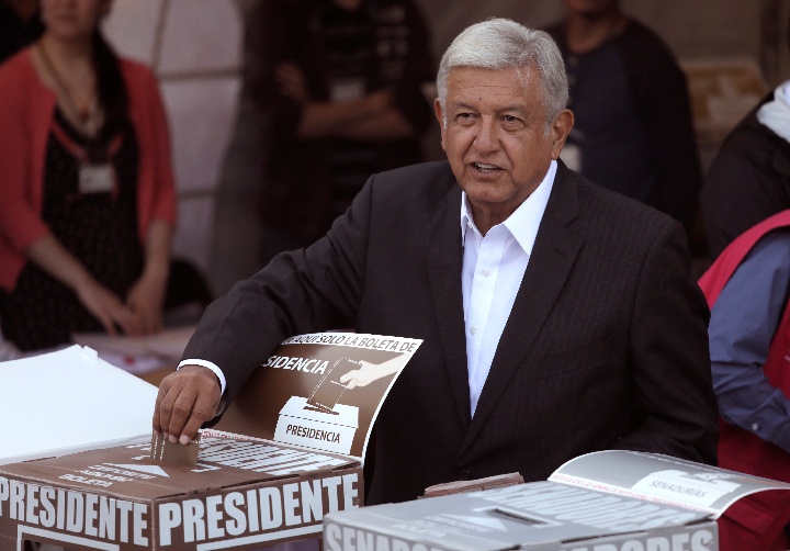 在这场六年一次的墨西哥总统选举中,左翼候选人安德烈斯·曼努埃尔·洛佩斯·奥夫拉多尔获得至少53%的选票。
