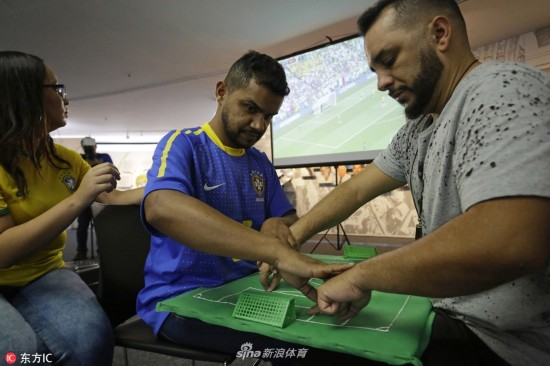 当地时间2018年7月2日,巴西圣保罗,巴西足球人人参与,圣保罗聋盲人体验世界杯。