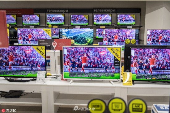 俄罗斯随处可见播放世界杯赛事